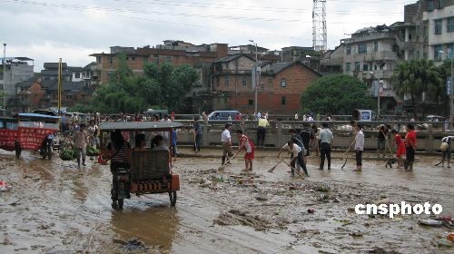 图:广西融水洪水退却 市区内一片狼籍(2)