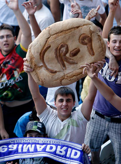 球迷高举特制的蛋糕。