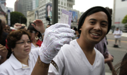 杰克逊公众追思会:歌迷白衣白手套