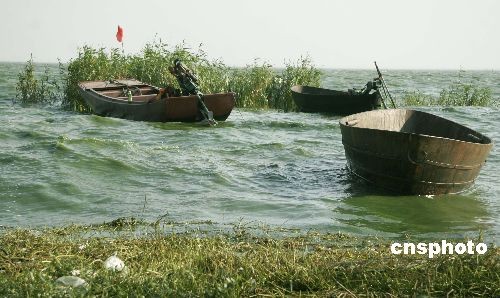 图:安徽巢湖东半湖出现大面积蓝藻(2)