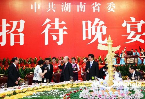 第五届两岸经贸文化论坛7月11日在长沙开幕,当晚,东道主湖南省委举行晚宴招待出席论坛的嘉宾。中新社发 宋吉河 摄