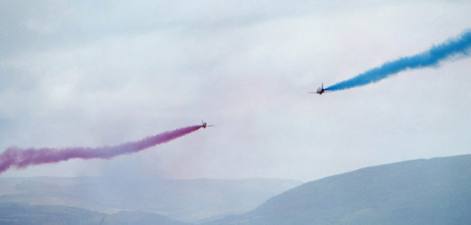 2009年7月12日,英国斯旺西,英国皇家空军“红箭”特技飞行表演队在首届威尔士航空表演节上进行特技飞行表演。