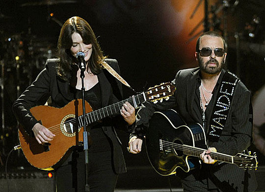 7月18日,法国总统萨科齐的夫人卡拉·布鲁尼在美国纽约广播城音乐厅举行的庆祝南非前总统曼德拉91岁生日音乐会上表演。