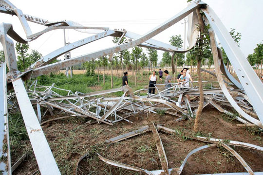 河北晋州在建电视塔遭暴雨袭击折断(3)