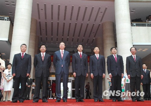 7月26日上午,中国七名新任驻外大使任命及宣誓就职仪式在外交部橄榄厅举行。中国新任驻津巴布韦大使忻顺康(中)等7人即将启程赴任。中新社发 侯宇 摄