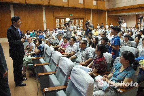 7月26日上午,中国外交部举行公众开放日活动,外交部发言人秦刚(左)亲切解答北京史家小学学生刘钰秋提出的问题。中新社发 侯宇 摄