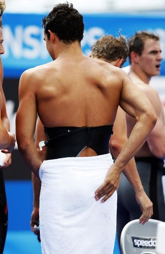 20分钟,穿过臀部。这对女运动员来说有点棘手。因为她们得拉着泳衣的腰部往上提,才能让臀部 穿进去。Jaked的一位发言人说,他们已经将这部分的材料稍稍加厚。这样至少有手可以拉的位置。