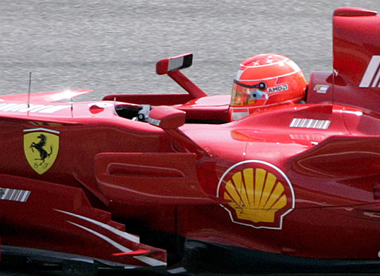 7月31日,F1车王舒马赫驾驶2007款法拉利赛车行驶在意大利穆杰洛赛道上。当日,作为复出的第一步,舒马赫对他的赛车进行了测试,他将参加8月23日举行的F1欧洲大奖赛。
