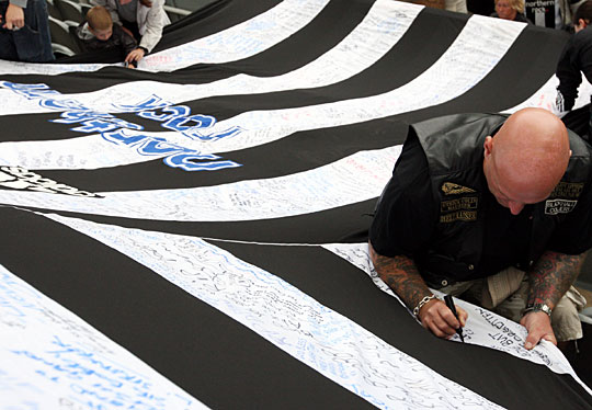 球迷用超大球衣纪念传奇人物罗布森(3)