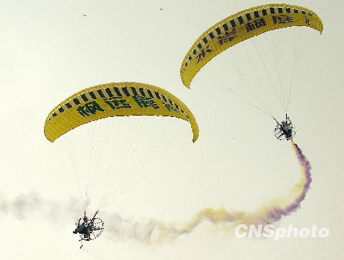 8月2日,杭州市2009年横渡钱塘江活动在钱江新城城市阳台江面举行,来自温州、金华、南京甚至大连等地1300多位游泳爱好者,投入浙江母亲河的怀抱,感受钱塘江的广阔襟怀。动力伞表演为横渡钱塘江选手助阵。