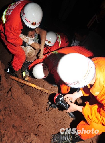 图:洛阳一建筑工地发生塌方 被埋人员被救出(2)