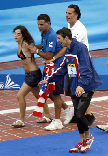 图:女粉丝穿比基尼"偷袭"偶像菲尔普斯(2)