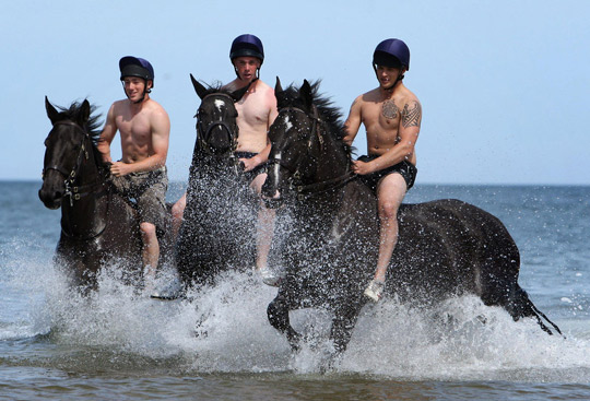 2009年8月3日,英国诺福克,英国皇家骑兵团的骑兵们在Holkham海滩参加一年一度的团练。