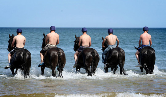 2009年8月3日,英国诺福克,英国皇家骑兵团的骑兵们在Holkham海滩参加一年一度的团练。