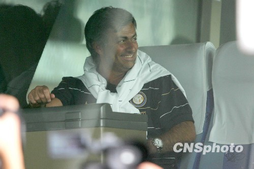 图为主教练穆里尼奥走出机场坐上大巴车。中新社发 富田 摄