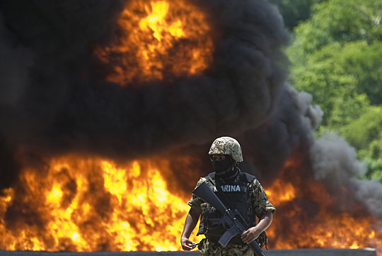 8月4日,墨西哥政府在墨西哥瓦哈卡州的Huatulco海军基地内,对缴获的7吨可卡因进行了焚化处理。