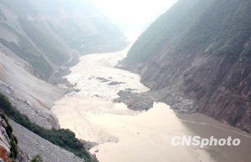 四川省政府应急办7日凌晨通报说,8月6日深夜至7日凌晨,四川省雅安市汉源县境内省道306线发生山体垮塌阻断大渡河。目前河水已开始翻越阻塞体,至少已造成两人死亡,十八人受伤。 据介绍,8月6日23时30分左右,四川省道306线汉源县顺河乡境内猴子岩处(瀑布沟电站上游距汉源县城约10公里)发生山体垮塌阻断大渡河。据现场目测,垮塌形成堵塞体约250米长、40米厚,垮塌方量约30至40万立方米。中新社发 刘勇 摄