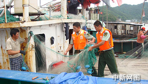 宁波边防官兵帮助渔民转移 积极应对"莫拉克"(2)