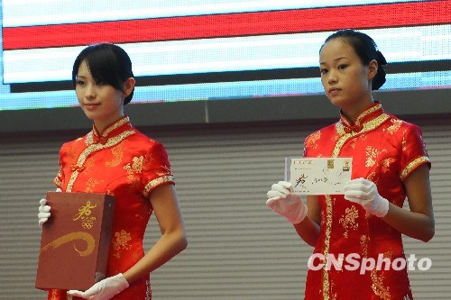 2009年8月8日上午,“珍藏梦想——奥运一周年专场拍卖会”在北京金融大街北京产权交易所三层大厅举行,拍卖首件标的——《第29届奥运会申办报告》及“奥运会申办会徽设计者签名首日封”最终以13万元的高价顺利成交。中新社发 侯宇 摄