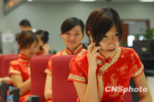 拍卖开始前靓丽的礼仪小姐在场边候场。中新社发 侯宇 摄