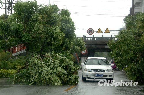 8月9日,受台风“莫拉克”的影响,福州市区许多树木被狂风连根拔起。据气象部门预计,台风“莫拉克”当天中午到傍晚将在福建连江到福鼎一带沿海登陆。中新社发 王东明 摄