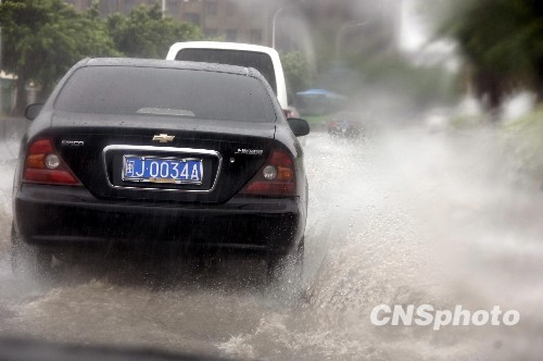 8月9日,预计当天将登陆福建的今年第八号台风“莫拉克”继续给福建中北部沿海地区带来强降水,致使许多路段积水成灾。中新社发 王东明 摄