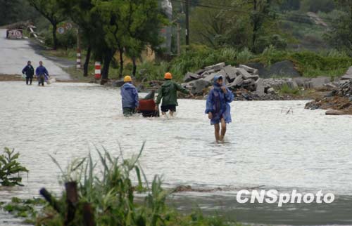 8月9日16时20分,第8号台风“莫拉克”在福建省霞浦县沿海登陆,登陆时台风中心最大风速12级(33米/秒),中心气压970百帕。“莫拉克”带来的强降雨致使福建霞浦许多路段被淹。 中新社发 王东明 摄