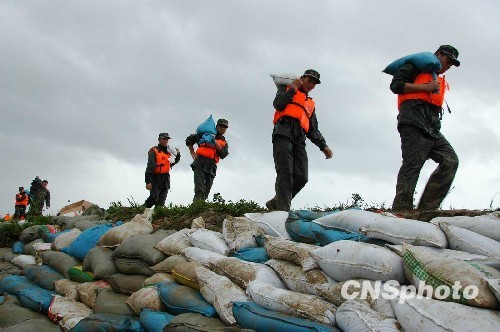 防抗“莫拉克” 福建海警官兵抢筑江堤——中新网