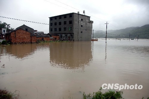 8月9日,第8号台风“莫拉克”于16时20分在福建省霞浦县沿海登陆,登陆时台风中心最大风速12级(33米/秒),中心气压970百帕。由于受到“莫拉克”带来的强降雨影响,霞浦洪山村内涝严重。中新社发 王东明 摄