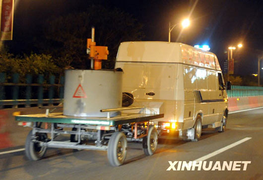 8月10日凌晨,武警车辆从乌鲁木齐地窝堡国际机场撤离。沙达提 摄