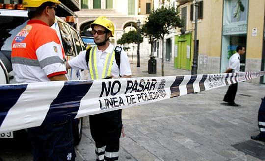 8月9日,西班牙旅游胜地马略卡岛的一个餐厅发生炸弹爆炸事件,没有造成人员伤亡。据报道称,西班牙民族分裂组织“埃塔”在爆炸发生前曾发出袭击警告。图为警察在爆炸现场设立封锁线。