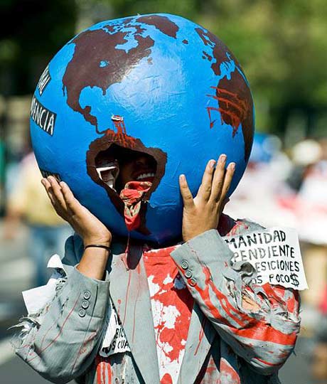 8月9日,在墨西哥第二大城市瓜达拉哈拉,一名环保人士头戴象征亚马逊雨林遭破坏的面具呼吁环境保护。当日,北美三国领导人在这里举行峰会,将讨论气候变化以及能源等问题。