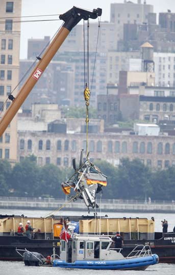 纽约撞机事故的直升机残骸被打捞上岸(2)