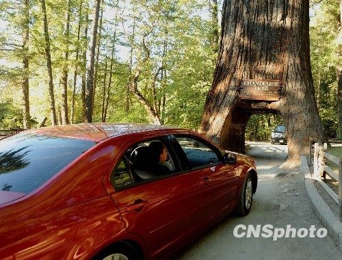图为驾车者正在准备通过树洞。中新社发 贾国荣 摄