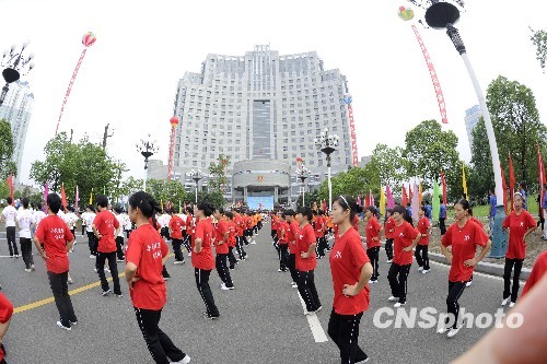 图:浙江台州黄岩举行千人排舞万人健身走活动(3)