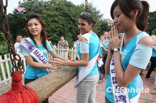 8月16日,来自120个国家的2009国际旅游小姐冠军总决赛佳丽,来到河南信阳进行分赛暨巡游活动。