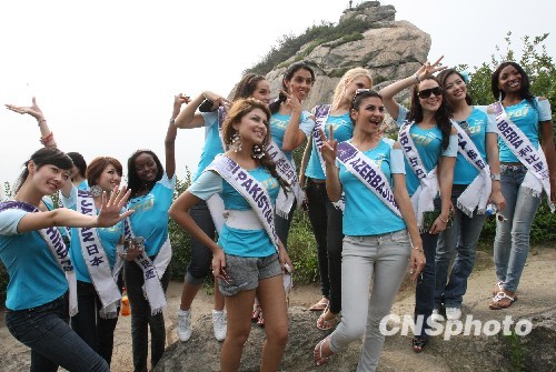 图为各国佳丽浏览信阳风景区鸡公山。中新社发 钱兴强 摄