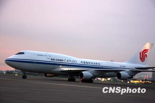 8月18日傍晚,一架国航货机搭载海协会紧急筹措的首批物资,抵达高雄小港机场。这是大陆第一次通过货运包机空运救灾物资到台湾。海协会副秘书长马晓光等3名工作人员随行。中新社发 董会峰 摄