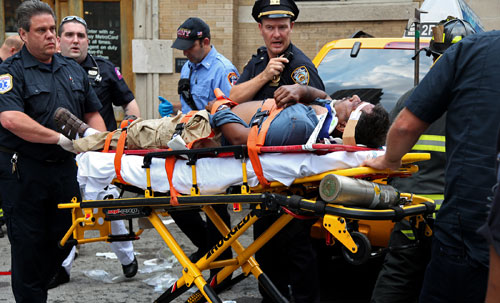 图:美国纽约“疯狂”出租车撞上地铁站(2)
