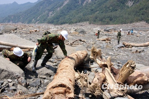 图为8月19日,救援人员在现场搜索,不放过任何一个角落。中新社发 董会峰 摄