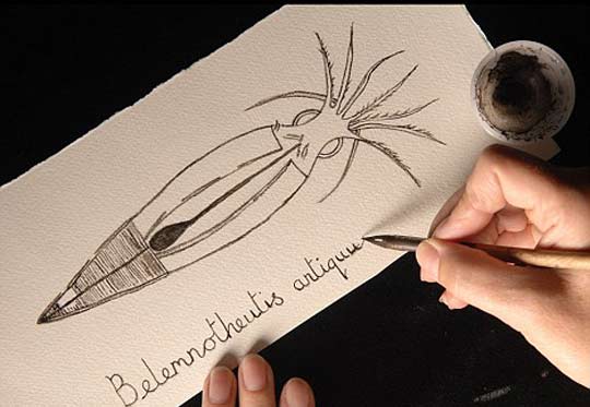 科学家利用在乌贼化石获取的墨汁绘制复原图。