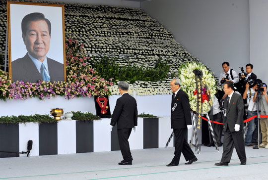 8月21日,朝鲜吊唁团一行6人在朝鲜劳动党中央委员会书记金基南的率领下,抵达韩国首尔。在韩国多位官员的陪同下,朝鲜吊唁团在设立在国会的灵堂吊唁韩国前总统金大中。