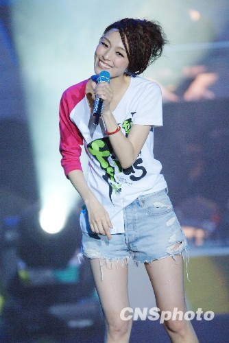8月21日晚,范玮琪“F.ONE我们是朋友”北京演唱会举行。这是素有华语乐坛“氧气美女”、综艺界“主持达人”之称的台湾歌手范玮琪出道9年来首次在大陆举办个人演唱会。范范连续演绎了《启程》、《我们的纪念日》、《黑白配》等经典范式情歌,更是在整场演唱会中造型百变,从可爱的白色天使裙到清新的邻家女孩装扮,让歌迷大饱耳福之外,还大饱眼福。中新社发 李学仕 摄