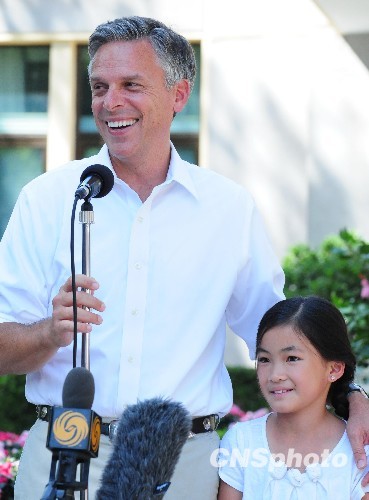 8月22日,美国新任驻华大使洪博培在北京美国大使馆新闻处举行到任媒体会。洪博培向众人介绍了自己的家人,其中二女儿是他在中国扬州收养的杨乐意,他本人最早也曾在1984年就来过中国。中新社发 侯宇 摄
