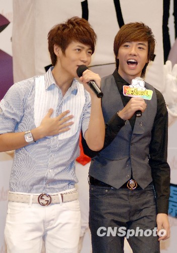 图为快男俞灏明、魏晨(右至左)。中新社发 李学仕 摄