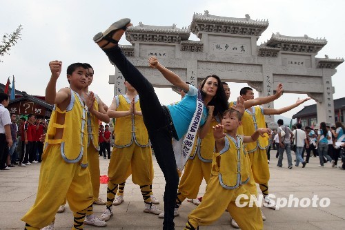 组图:国际旅游小姐少林寺里学功夫(2)