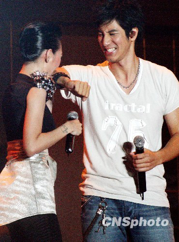 8月23日晚,“康熙盛典全国巡回演唱会”在温州体育场举行,台湾歌星王力宏出席演唱。中新社发 钱兴强 摄