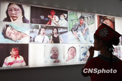 《平息乌鲁木齐“7·5”打砸抢烧严重暴力犯罪事件纪实图片展》同时开展,展览将于9月17日结束。中新社发 盛佳鹏 摄