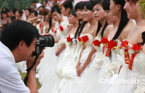 8月26日,牛郎织女神话传说的发祥地——河南鲁山举行浪漫七夕大型集体婚礼活动,来自各地的情侣和数千名民众齐聚牛郎故里共享浪漫美好时光。中新社发 王中举 摄