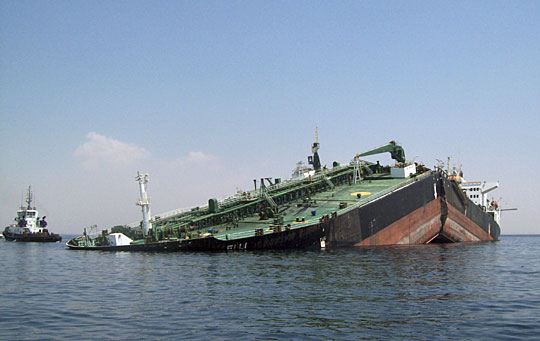 一艘巴拿马籍油轮8月28日在埃及苏伊士运河的入口处断裂成两段,船上的24名船员并无伤亡。在油轮断裂后,苏伊士运河港口工人及时进行了救援工作,帮助油轮上24名船员脱离险境,并制止了油轮所装载的60吨燃料外泄。